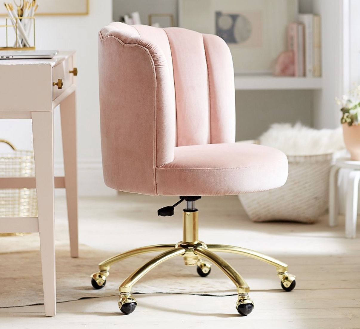 Pottery Barn Swivel Desk Chair – Pink Velvet $150