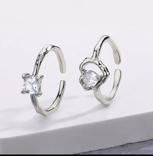 Set 2 Two 925 Women's Diamond Heart Rings Ring Band Cuff Gift