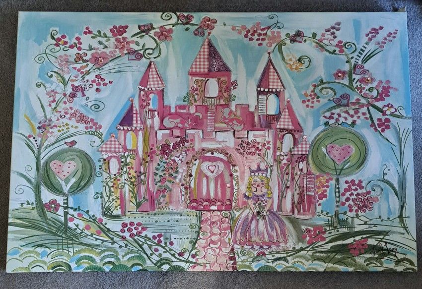 Princess Canvas Colleen Karis Designs Liesl Long Painting Jeweled Dedazzled 36" wide x 24" High In great shape. Cash only Contactless porch pickup in Green Brook Township