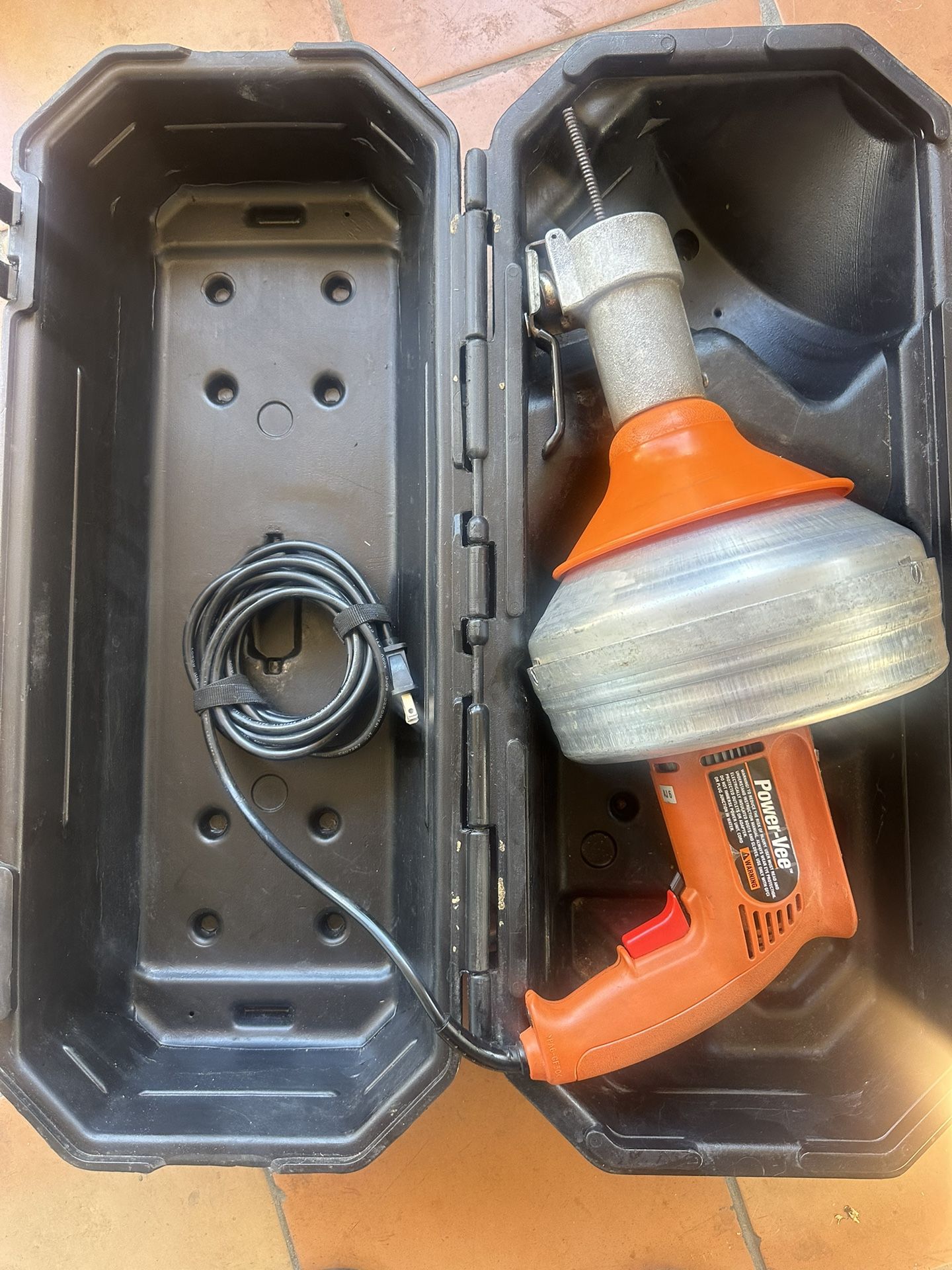 General Wire POWER-VEE drain/sewer cleaning machine hand held has automatic feed comes with hard case barely used $325