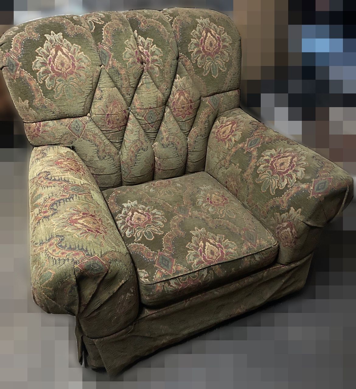 In great condition. It’s a pretty big chair, it’s really comfortable! I have grey washable covers if you’d like those as well. Asking $15 obo