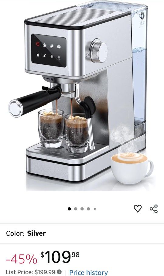 Espresso Machine with Milk Frother, 20 Bar Compact Espresso Maker with Touch Screen & 57.5oz Removable Water Tank for Home, Stainless Steel Coffee Machine for Cappuccino, Latte, Silver