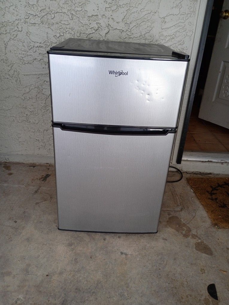 3.1 cu ft 120volt 32" x 20" x 19" Ideal for dorm, bedroom, office , man cave... Sleek, clean...Freezer works great!