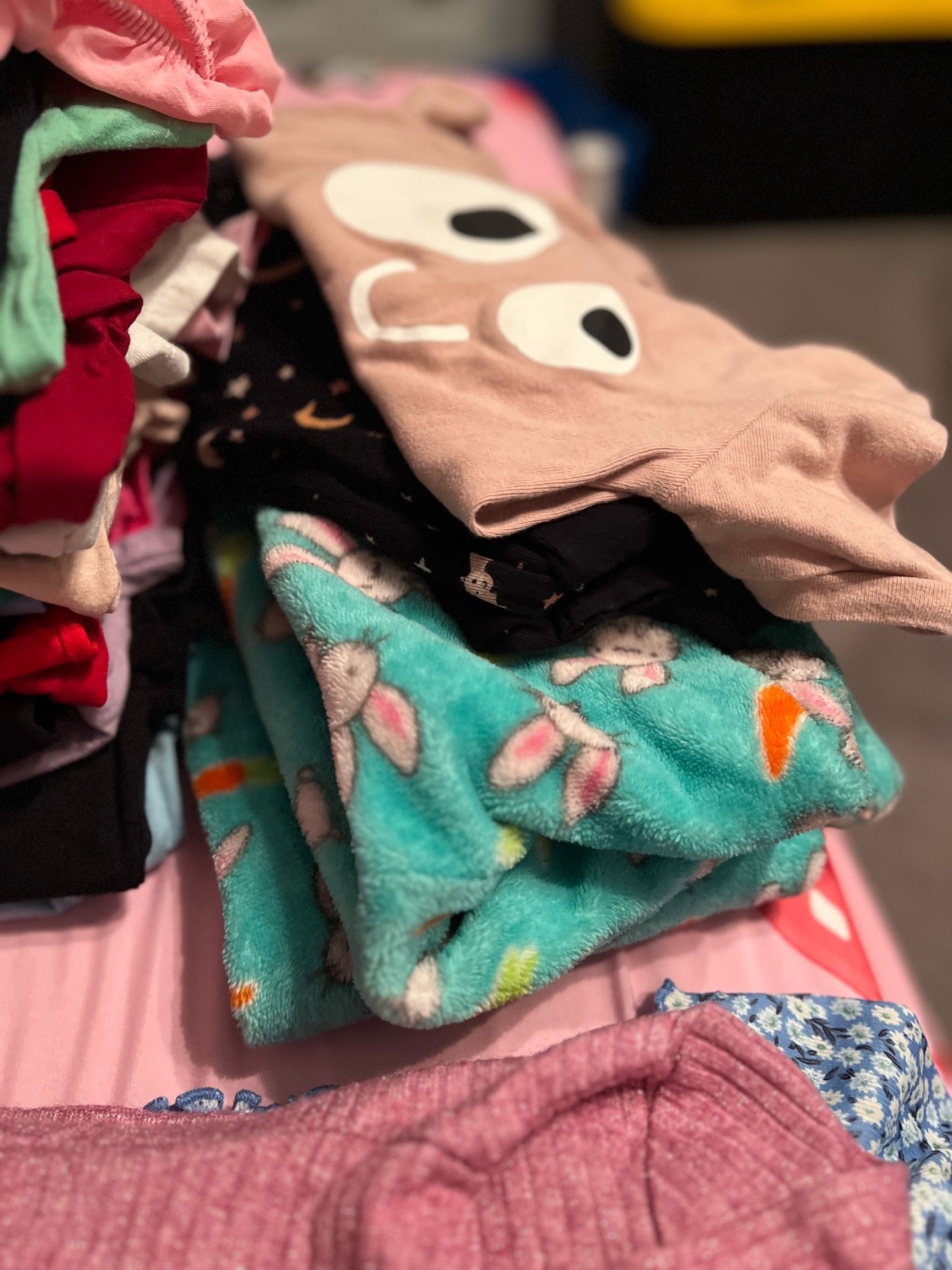 39 tops size 5/6-7/8 ( including stitch , bluey and Christmas shirts) 7 pants(including one pair of jeans) size 6-7 2 sets of pijamas size 5/6 3 beanies 2 new outfits 1 new blouse 5T 1 new dress from SHEIN 6 1 new outfit from SHEIN 7 1 new outfit from Old Navy 5T Pick up only Arlington and Van Buren Asking $40 for all that’s less than $1 a piece!