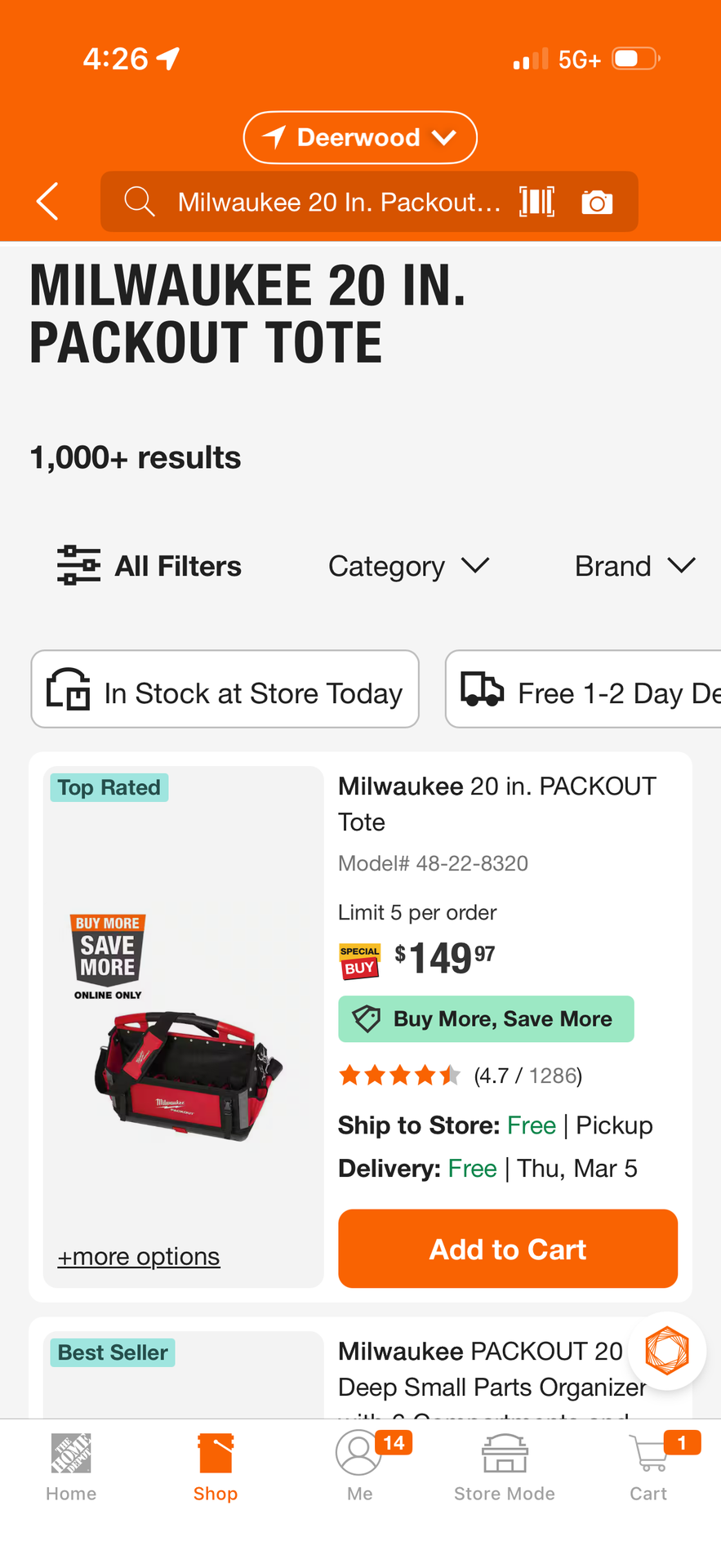 Milwaukee 20 inch packout tote