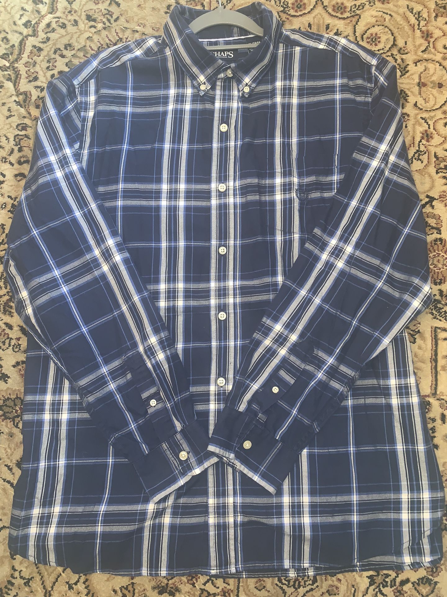 Chaps Easy Care Shirt Men’s XL Blue Plaid Long Sleeve