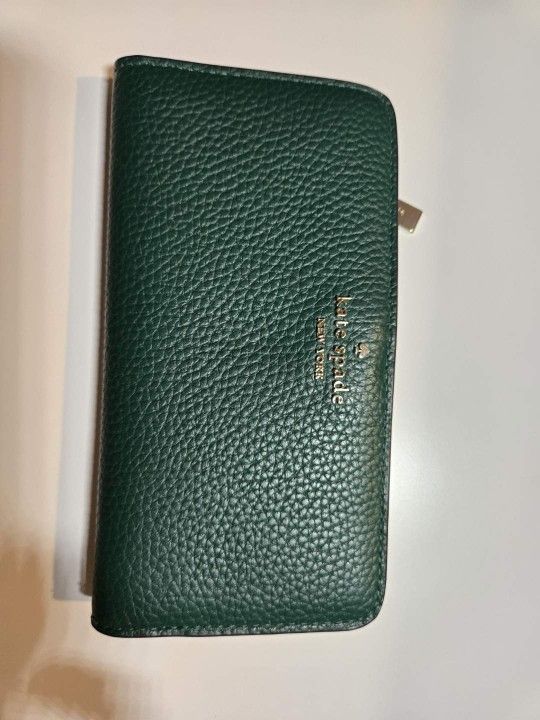 Kate Spade New York Dumpling Large Slim Pebbled Leather Bifold Wallet (Deep Jade)
