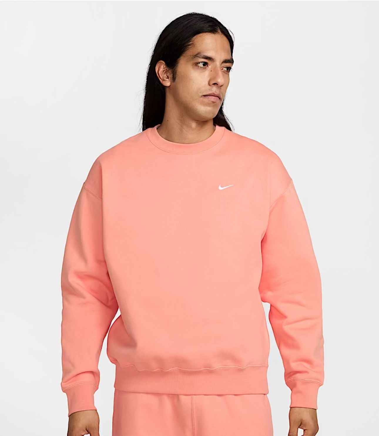 NEW NIKE MENS LARGE SOLO SWOOSH FLEECE CREWNECK PULLOVER DQ5209-844 APRICOT