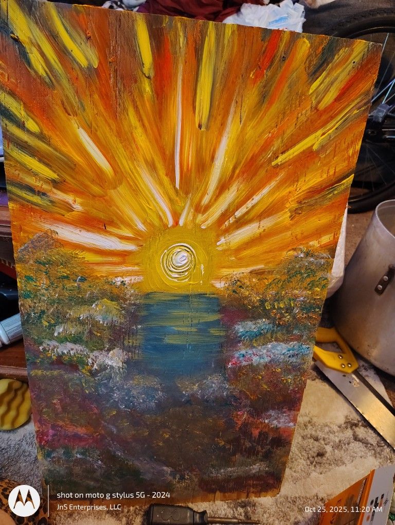 This is hand painted using one paintbrush throughout the entire painting ... She impressed herself lol she saw the cover of Catan and was inspired so please be nice and make an offer on the one of one painting, signed. No prints, hand painted by my girlfriend. Location artist SnJ Enterprises π