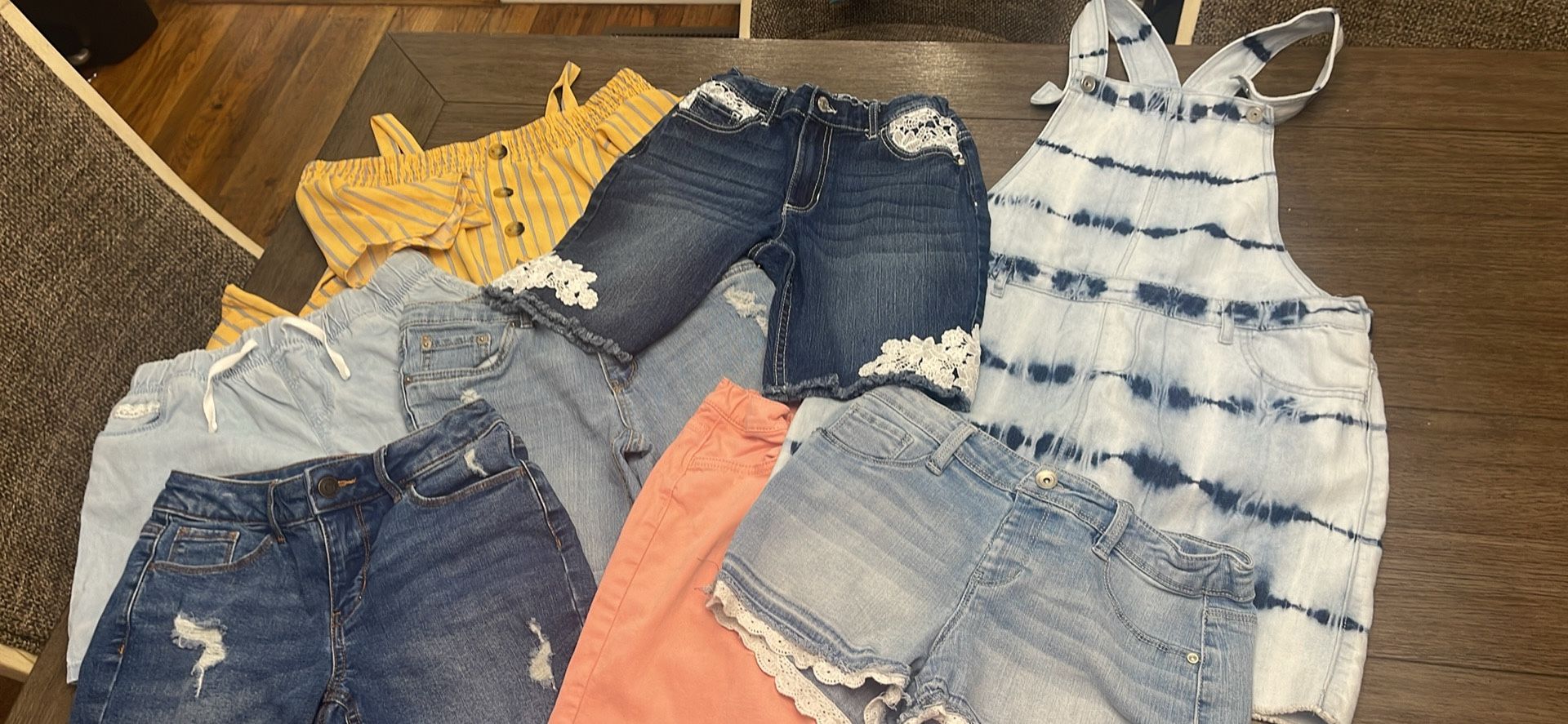 Assorted girls clothing. Size 14. Shorts x 6 Overall dress x 1 Jumper x 1 $10.00 FOR ALL Levi’s, Children’s Place, Jordache, Kensie girls, Carter’s kids, Sonoma CASH. NO HOLDS. PORCH PICK UP is near Sango Publix off of the MLK Parkway.