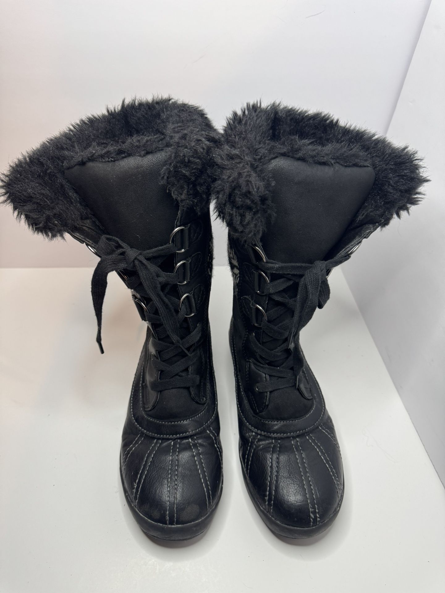 Women’s Northside Bishop 917 Winter Boots Size 8 – Pre‑Loved, Good Condition • Stylish Northside Bishop 917 women’s winter snow boots – size 8 • Black & white design with faux fur trim accents for fashion + warmth • Mid‑calf shaft, round toe, lace‑up closure for secure fit & comfort • Synthetic upper + faux fur lining for durability & insulation • Features: cushioned, non‑slip sole, water‑resistant, low block heel • Perfect for cold weather, outdoor activities, or casual winter wear • Pre‑owned: please review photos carefully (WYSIWYG – actual boots shown) • More pics available upon request; reasonable offers welcomed • Returns accepted within 14 days in original condition; buyer responsible for sizing knowledge • Ships boxed to preserve current condition; payment due within 2 business days