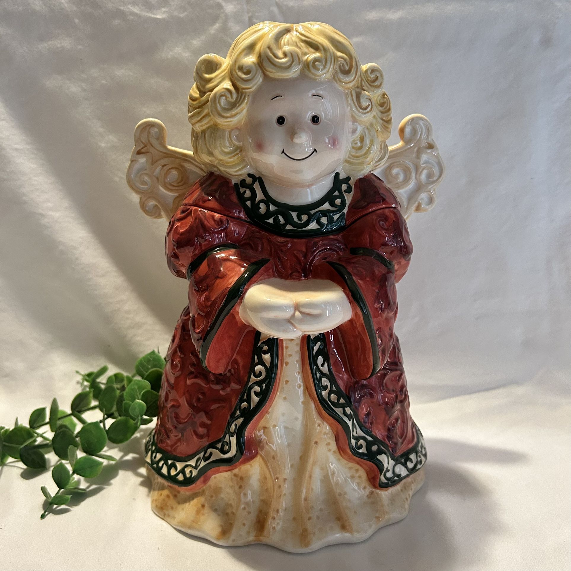 *Use #wrayclark in the search bar to browse my closet using filters! Xposted No Holds. Please read item description. Local pick up available :) GUC! a vintage ceramic blond Christmas angel cookie jar. Approximately 8” tall. It features a hand-painted angel figurine with a red robe and cream-colored dress, holding its hands together. The cookie jar is made of ceramic and porcelain materials. It is a collectible item, often used for holiday decoration and storing treats. Clean smoke free hime. 2+lbs Storage cannister pet snacks