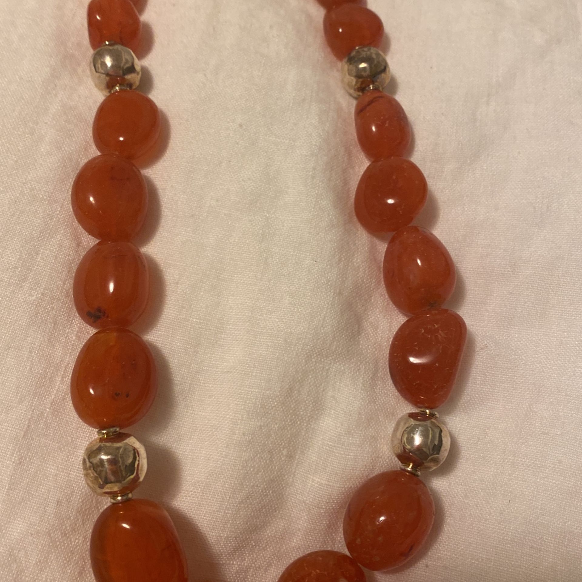 Chunky Carnelian and sterling silver beads necklace 20 inches.