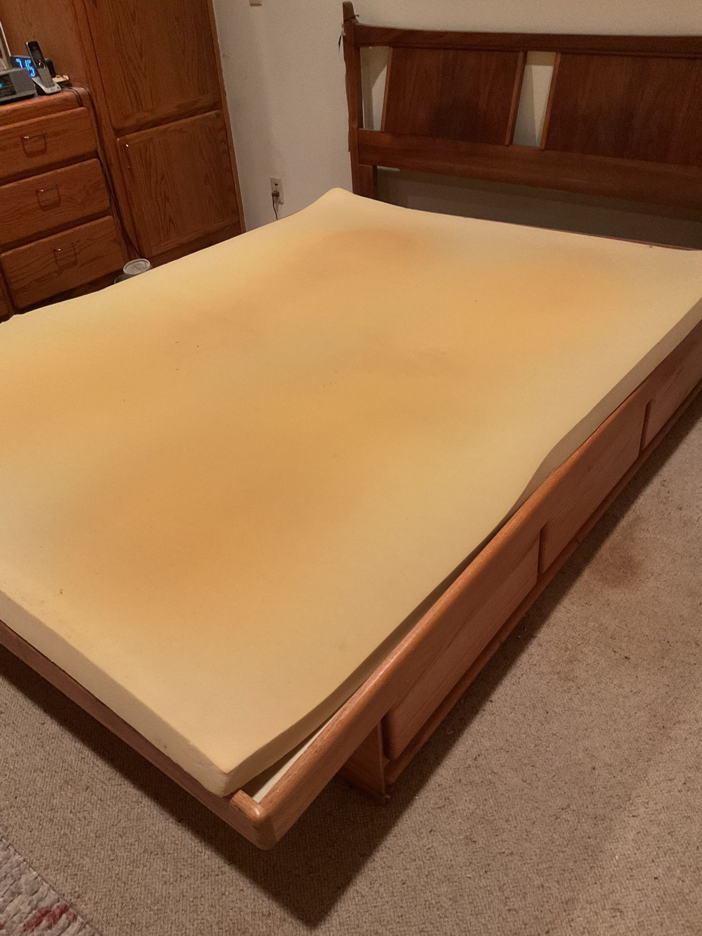 Queen size, memory foam, 2” thick, paid $100 at Costco