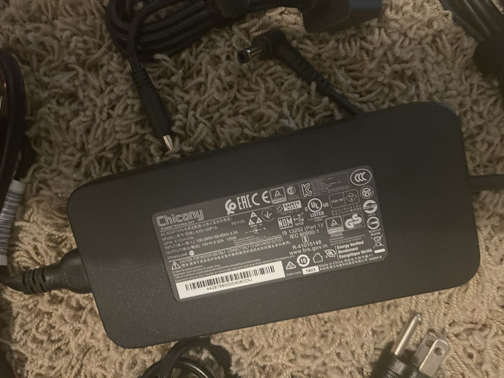 Chicony laptop power supply/adapter . Output: 19 volt - 6.32 amp. - 120 watt