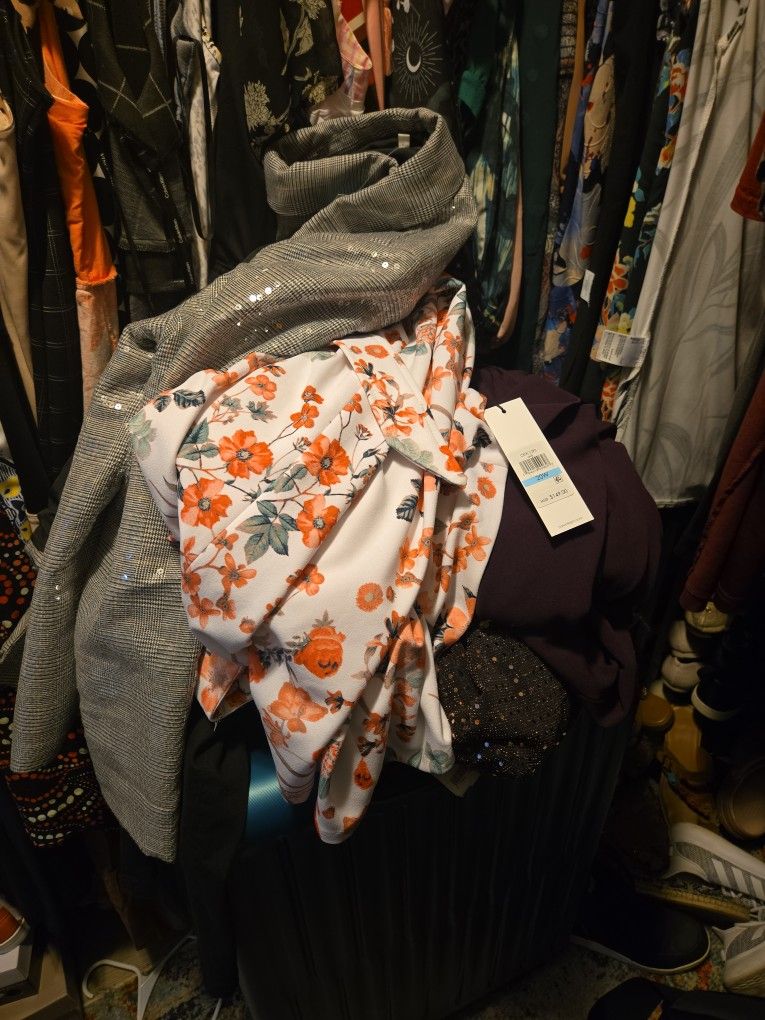 Lots of plus sized clothes, many with tags or worn once. Sizes and conditions listed below. Lost weight and need gone. My loss is your gain. No holds. Pickup in milpitas. Sequin blazer 1X NWT $40 Blue sequin top worn once 2xl $20 Purple Calvin Klein jumpsuit NWT 20W $90 Floral Calvin dress. Small stitching needed at seam. $50 16W Brown sequin Calvin Klein dress NWT 16W $90 Blue sparkly dress 18W $40 Black with gold polka dot Calvin Klein dress 16W $50 Cream and rose gold sequin tank NWOT 1X $20