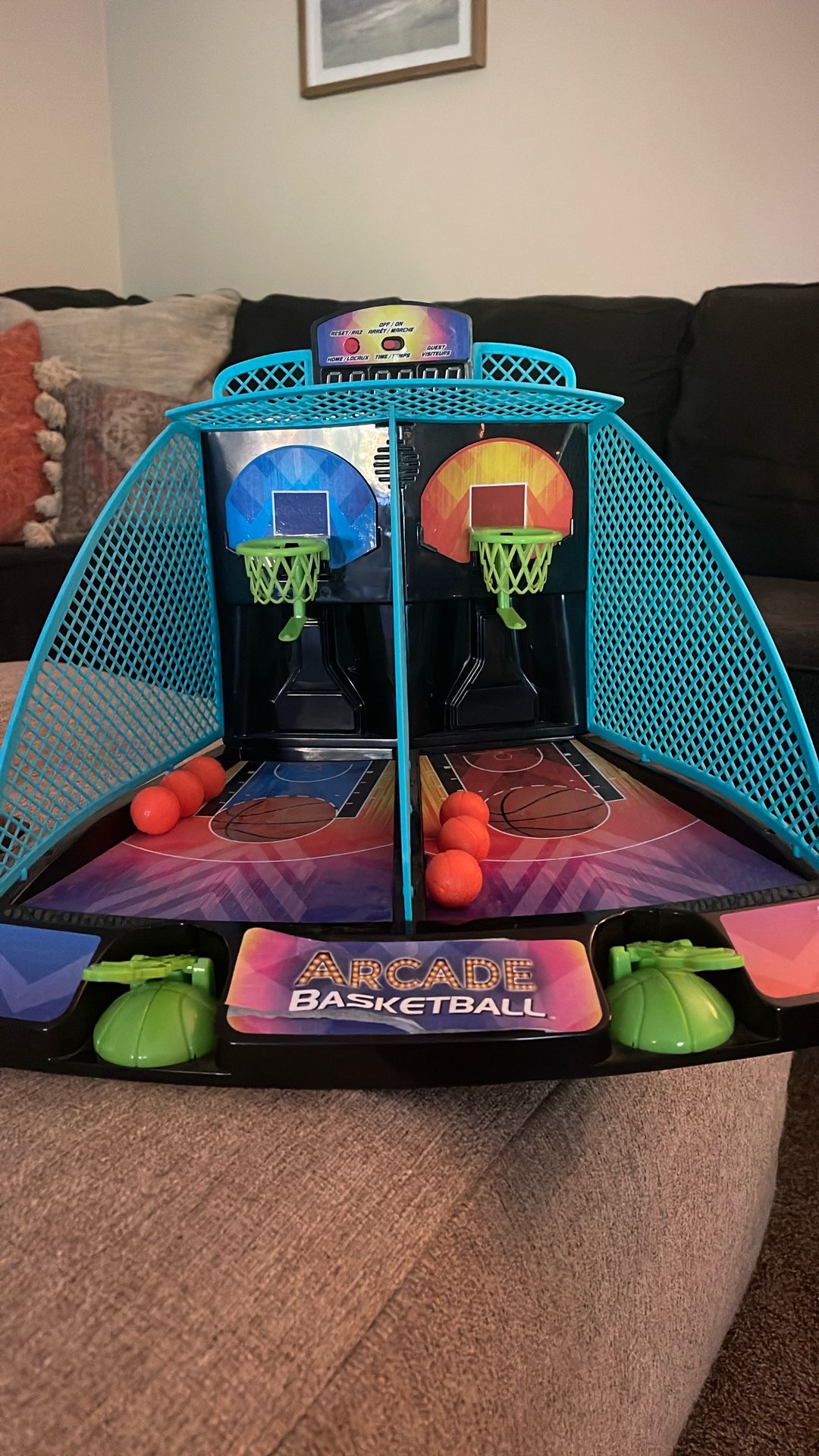 In great condition (loose sticker on the bottom otherwise like new and in working order). Mini Basketballs included (6 in all).