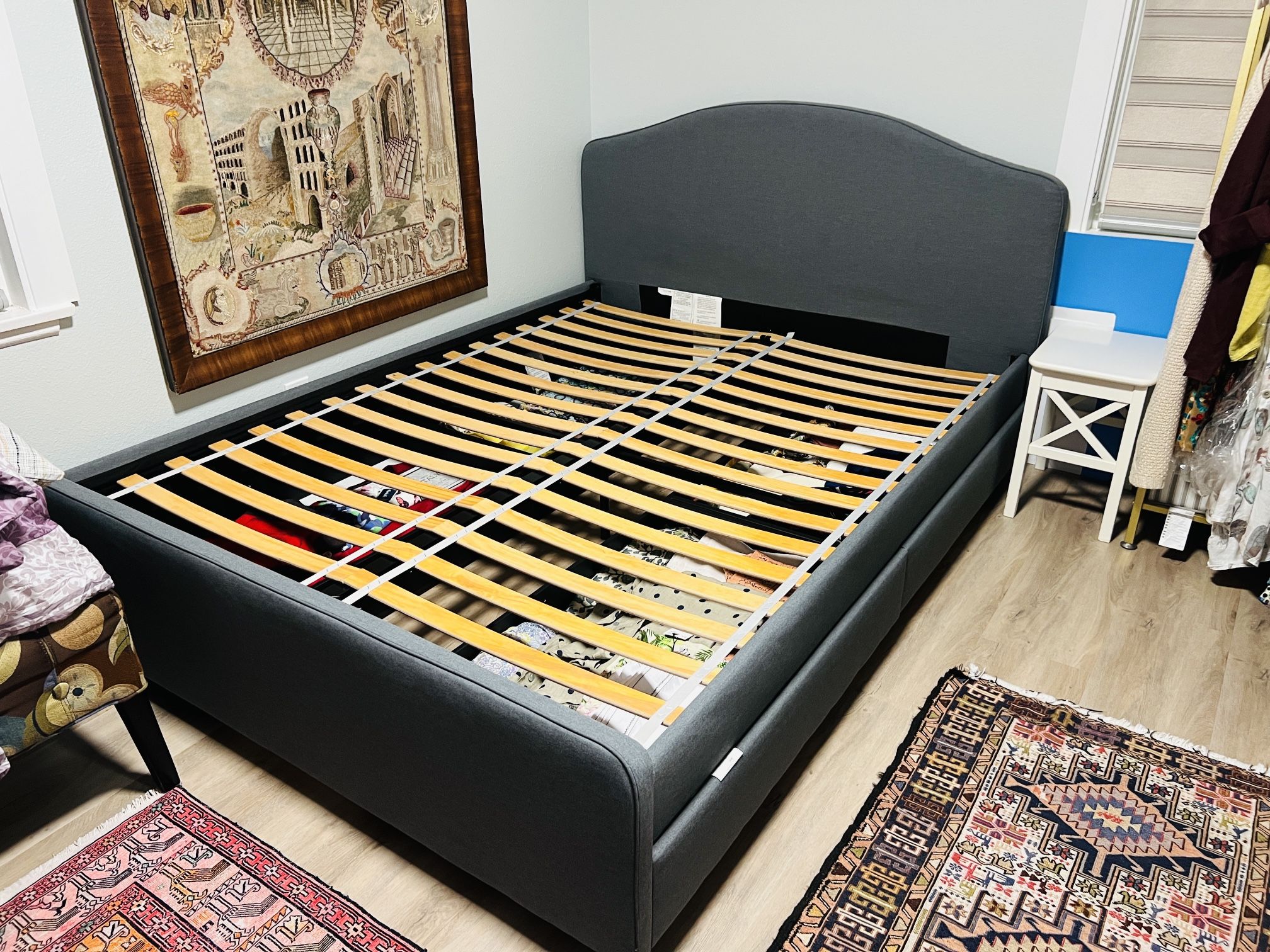 Pick up location: West Hills CA IKEA Queen size Upholstered Bed Frame 4 Drawers