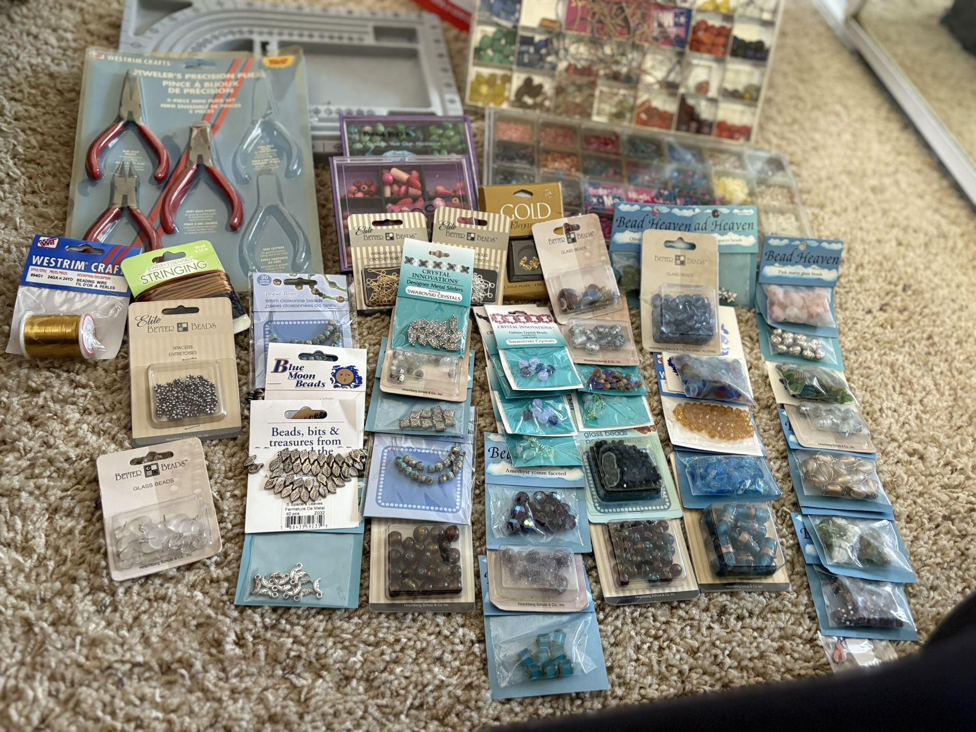 Jewelry making supplies, tools, findings, beads, many many things. Mostly new I bought a lot of stuff thinking I’d make jewelry. Even bought strands of stones in Athens. But never made the time. $35 or make offer for smaller lots