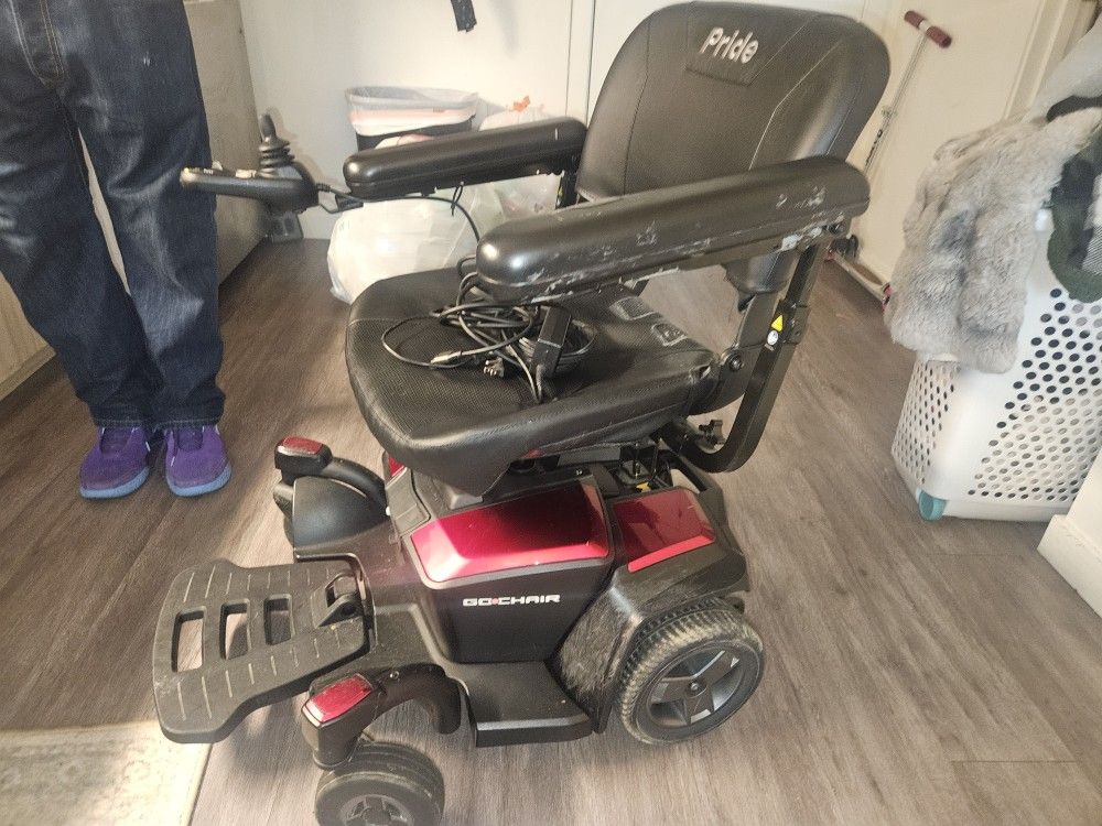 Lightly used Pride Mobility “Go Chair” — a compact, portable power wheelchair known for reliability, comfort, and easy transport. Perfect for indoor or outdoor use with a tight turning radius and quick disassembly design. Key Features: 300 lb weight capacity Top speed up to 3.8 mph Range: 7–10 miles per charge Feather-Touch disassembly – breaks down into 5 lightweight pieces for car transport Compact turning radius (~25") – great for apartments, stores, and tight spaces Off-board charger included (works perfectly) Flip-up armrests and adjustable footplate Sturdy solid tires – no flats ever Red shrouds / black seat with Pride logo Joystick controller with speed adjustment and battery indicator Condition: Runs and drives well. Batteries hold charge and charger is included. Some minor cosmetic wear on armrests and shrouds but overall very clean and ready to use. Specs: Model: Pride Mobility Go Chair Power: 2×12 V sealed lead-acid batteries (18 Ah each) Overall Weight: approx. 115–130 lb Seat Width: 18–20 in Max Incline: ~6° Retail new: $1,800+ Asking: $1,200 or best offer — willing to negotiate for quick pickup 💬 Message me if interested or to test drive.