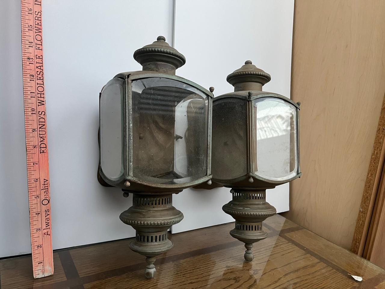 Antique Porch Light Carriage Buggy Glass Brass Lantern Lamps Electrified Convert