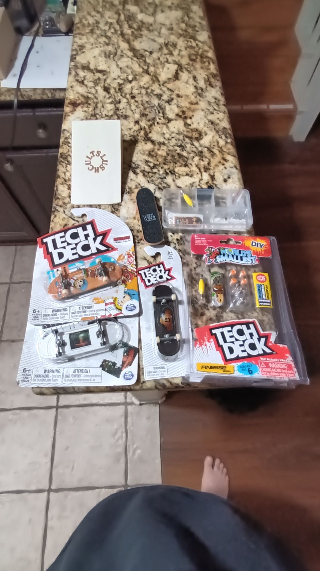 Tech Deck fingerboard lot total of 4 regular tech decks and 2 worlds smallest tech decks also comes with slush cult wood ramp everything is new and selling as a lot for the price listed cash only no trades pickup only no deliveries Charleston and Durango cross streets.