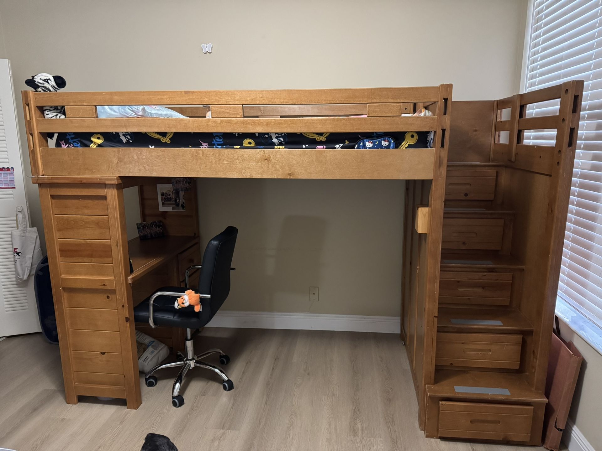 Kids or adult twin bunk bed with office and stairs. Chair not included in price but also for sale. Chair is $50. Mattress included!! No damage In perfect condition Desk has 3 drawers Stairs have 5 drawers Pick up in West Boca/Parkland area