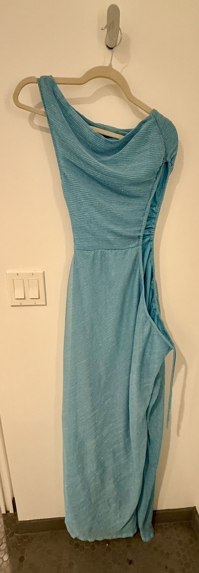 Blue One-Shoulder Cut-Out Mesh Maxi Dress (XS) β $35