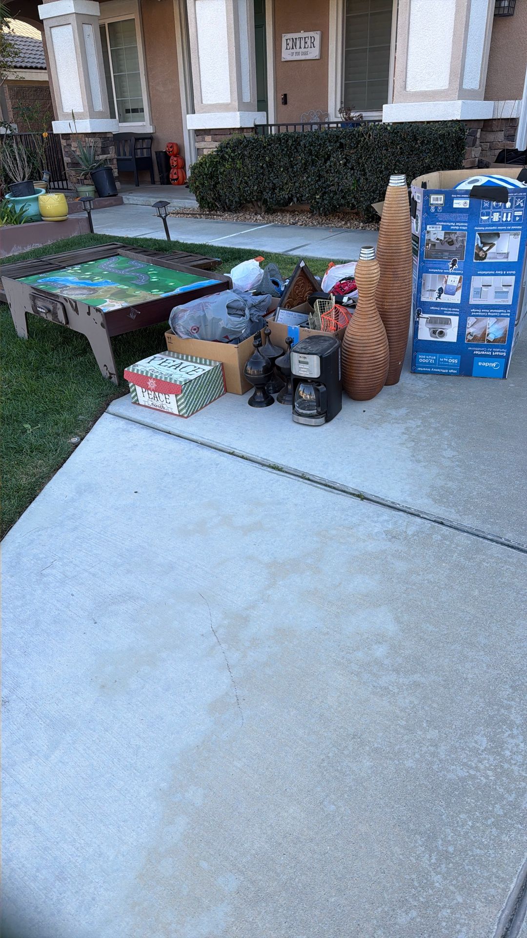 If the post is still up then there are items left. Left outside. First come first serve. I will not hold the items. Toys Decor Stuffies Some college books on human sexuality and accounting Bed frame with base. Vases Lamps Large dog crate Taekwondo gear Washing machine- it needs a bolt for the agitator. Works. $75 3017 Muir Mountain Way San Bernardino 92407