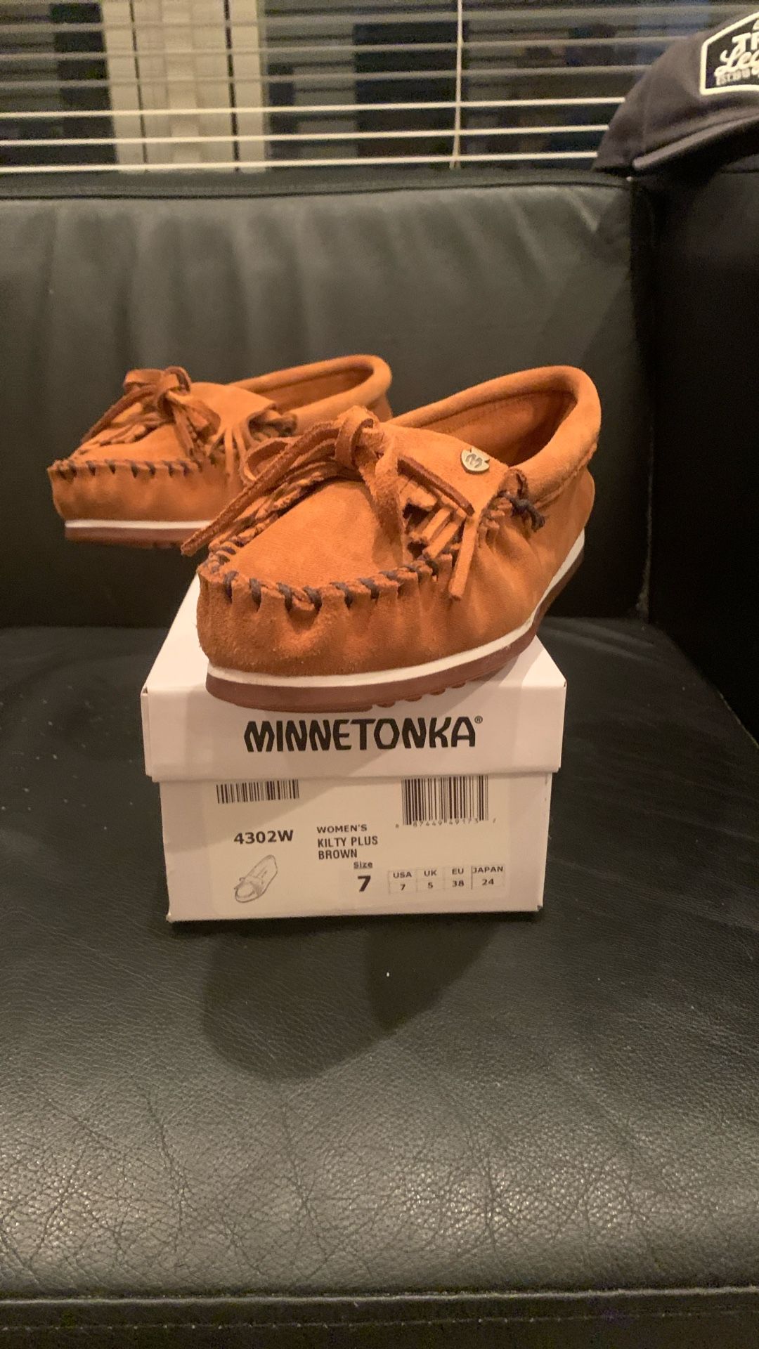 The product shown in the image is the Minnetonka Women's Kilty Plus Moccasin. These are a next-generation version of the classic Kilty moccasin, designed for enhanced comfort and durability. Product Information Feature Detail Material Genuine water-resistant suede upper Color Brown (also available in other colors) Insole Three layers of cushioning, including memory foam and an EVA midsole for arch support Outsole Flexible rubber sole for traction and durability Style Details Fringe and rawhide lace detail, hand-whipped stitching on the toe box Fit Designed to fit snugly at first, molding to your foot for a custom fit over time