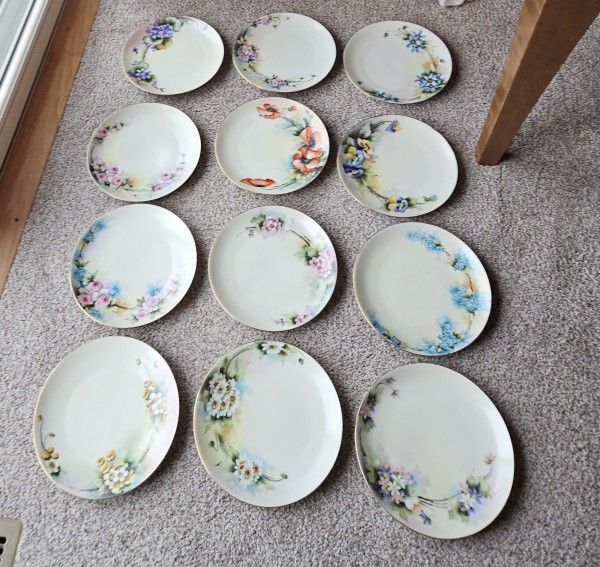 Beautiful colors and gilt on all 12 Bavarian floral plates from the 1930's. No chips or cracks. Will sell individually for $20 each or all 12 for $200. Meet in public location for exchange(Delmar/Glenmont). Cash only.