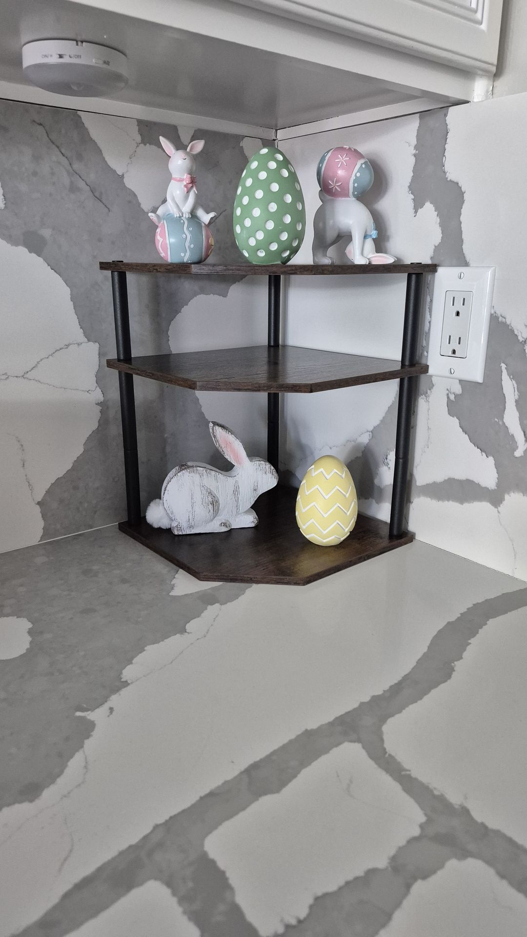 Never used, didn't fit where I wanted to use it. Shelves measure 10" X 10", stands 12" tall. Decorations not included. Cash or Zelle please.