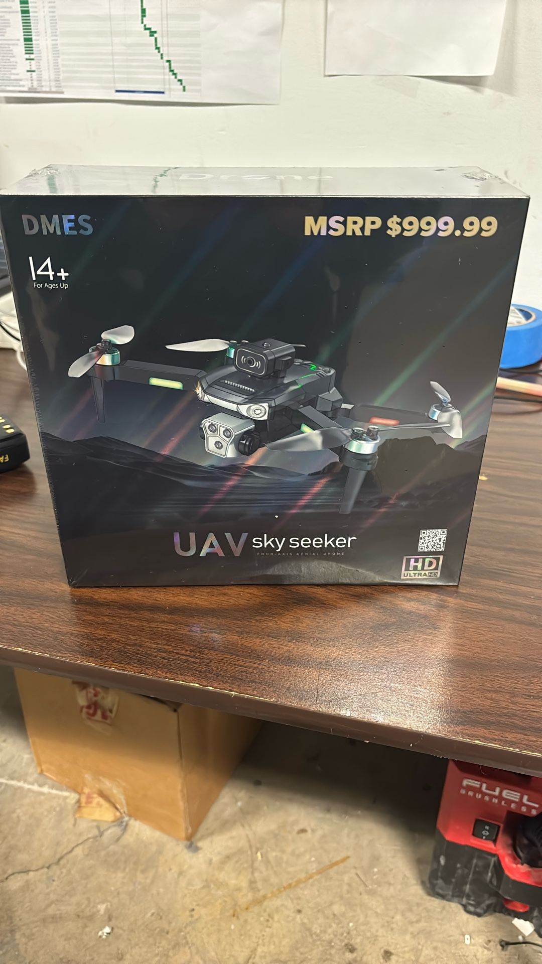 This is the ADMES Sky Seeker UAV drone. It's for ages 14 and up and features Ultra HD