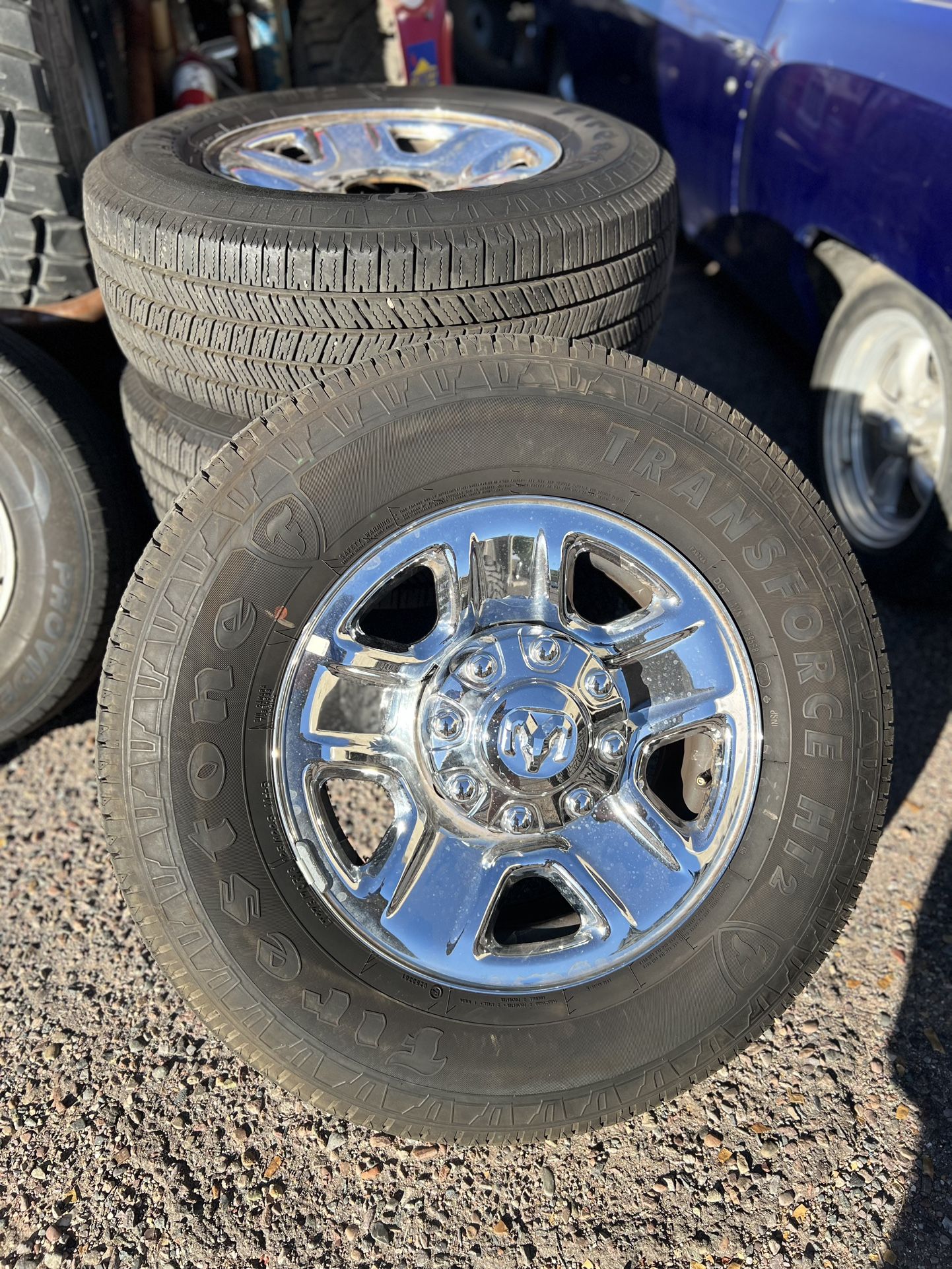 18” Ram2500 steel wheels and tires Firestone Transforce ht2 tire brand LT275/70/18 tire side 2024 dots 8x6.5 bolt pattern Will fit older Rams Center caps included 90% tread life left $450 cash carry out