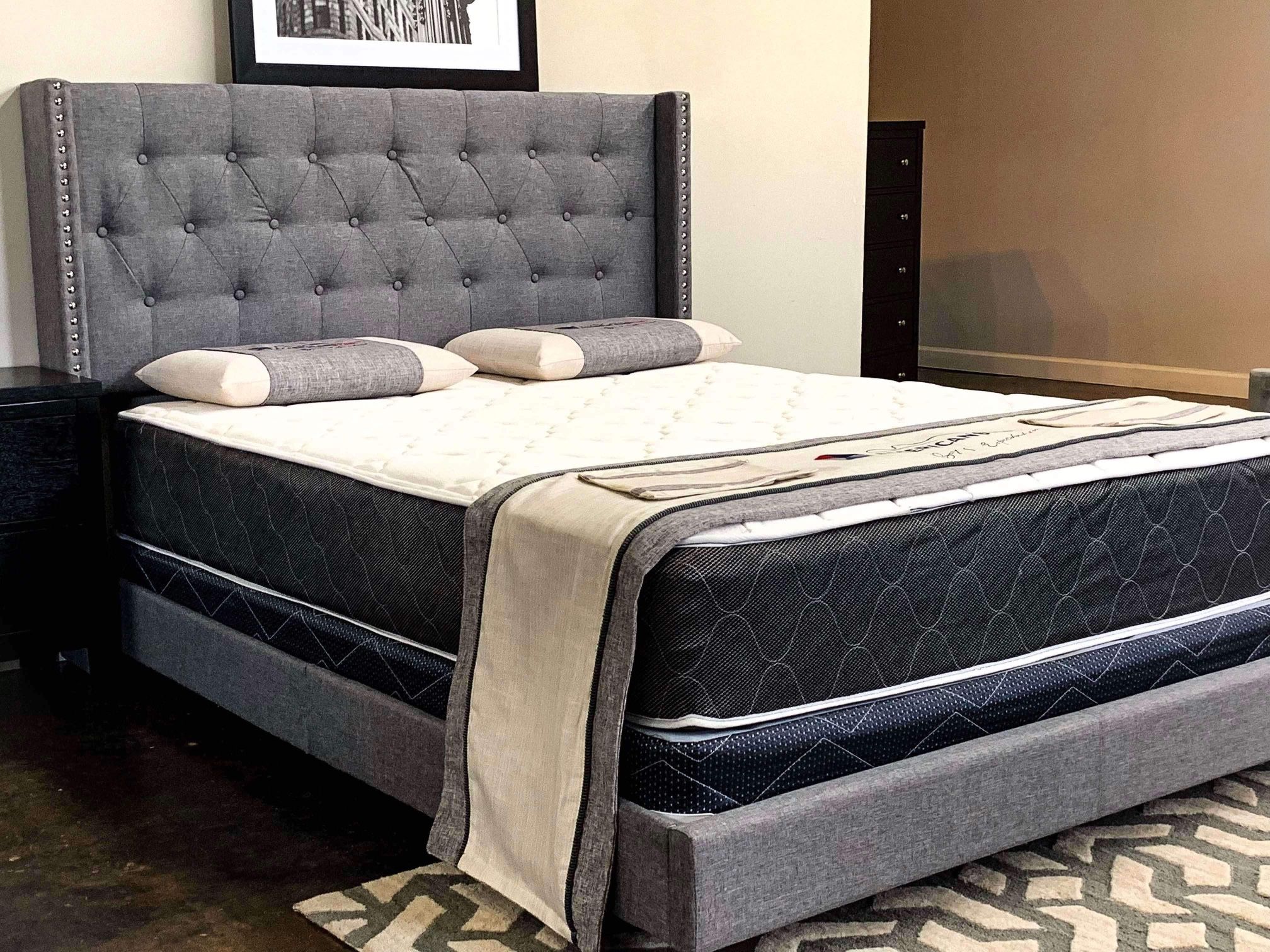 Brand New King Size Grey Button Tuffed Bed Frame With New Mattress/Fast Delivery