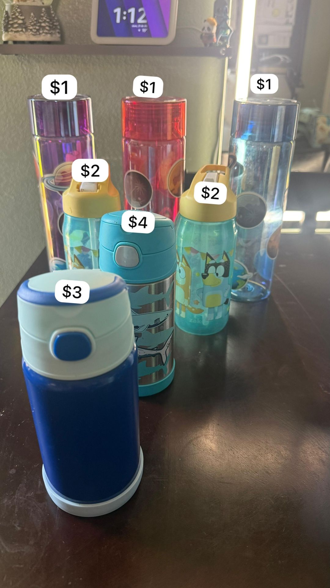 Bottles and thermoses; prices are shown in the photos.