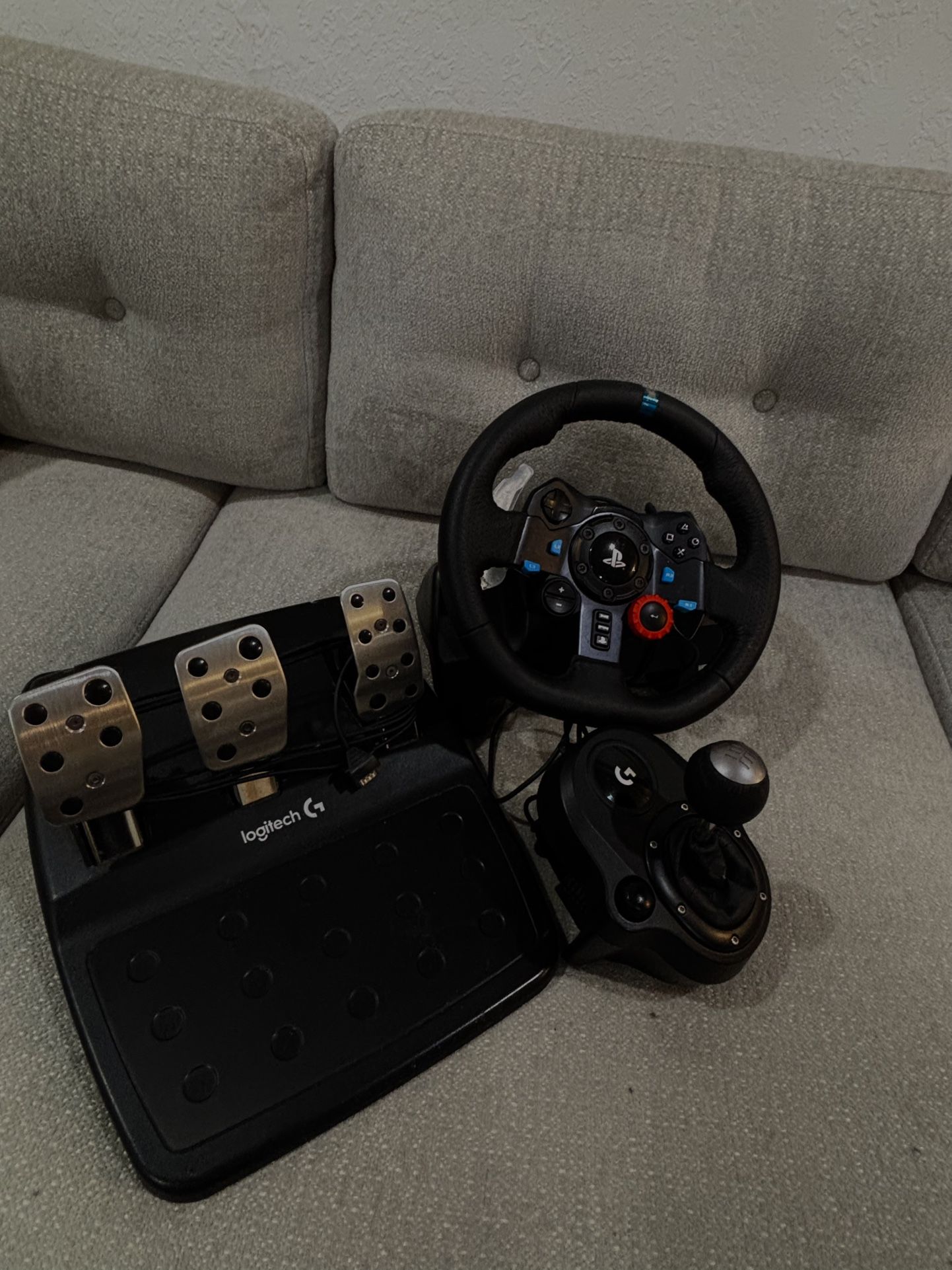 need gone ASAP g29 racing wheel i don’t use it anymore. comes with manual shifter , there is a small rip on it so i can negotiate on a fair price.