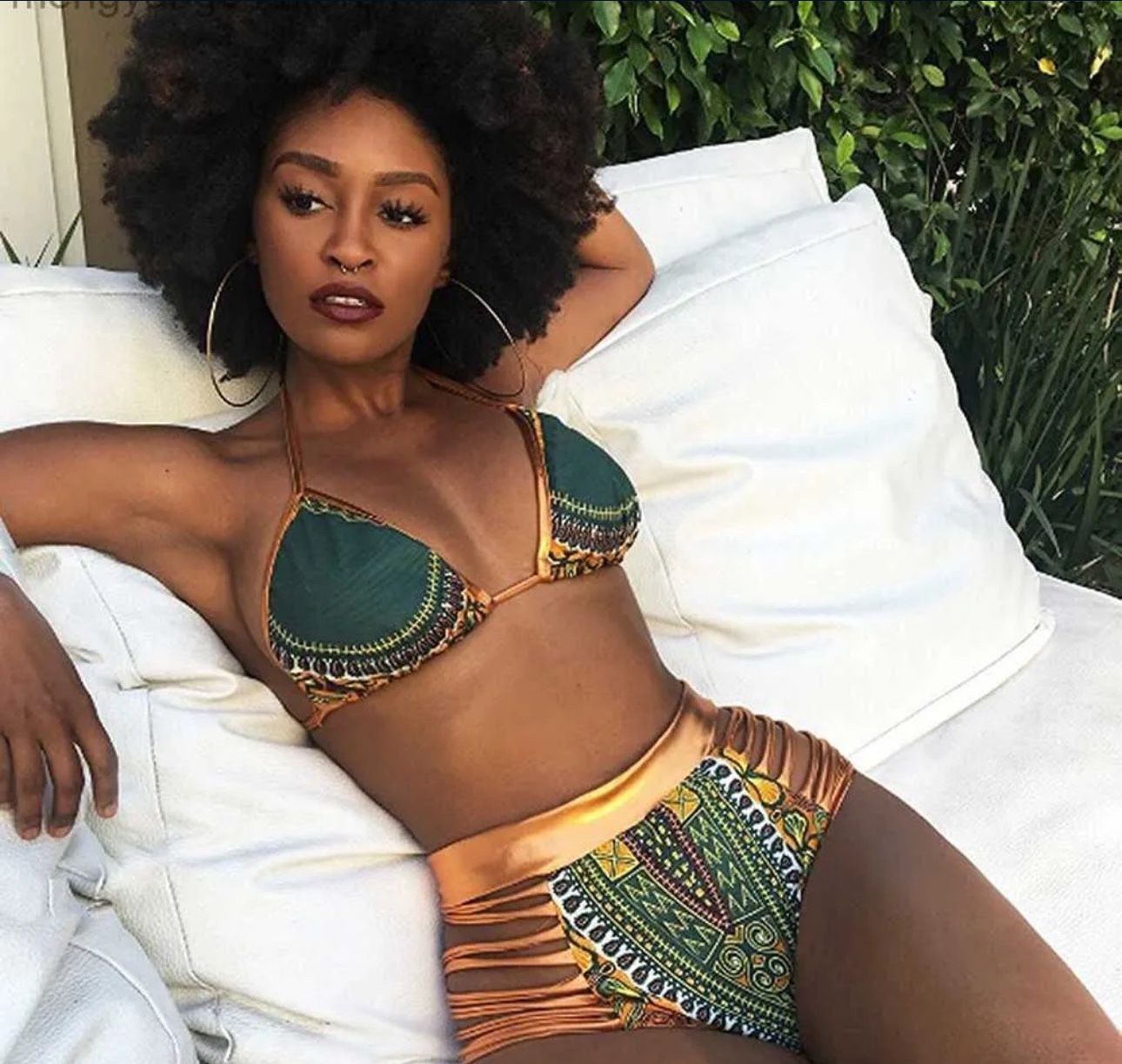 Two Pieces Bikini Set Sexy Geometric Swimwear Swimsuit High Waist Swimming Suit