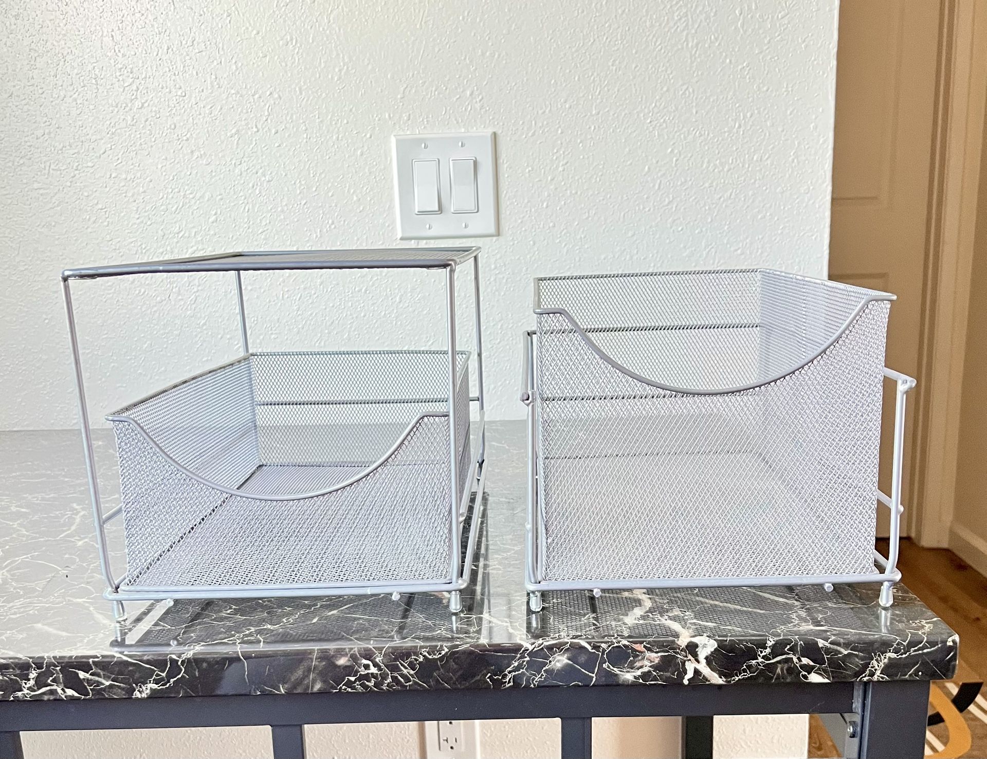 Sorbus® Cabinet Organizer Set —Mesh Storage Organizer with Pull Out Drawers-Ideal for Countertop, Cabinet, Pantry, Under the Sink, Desktop and More (Silver Two-Piece Set)