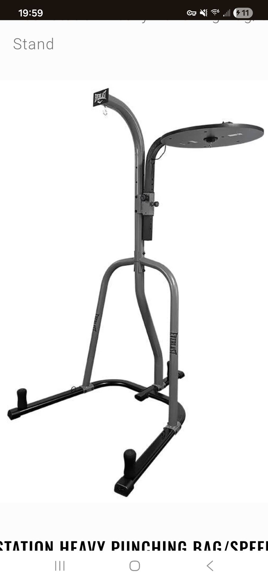 Currently disassembled but I have all the screws and parts for it. In used continue but still works well. Mounted my bag to the ceiling so no need for this anymore. Stand only. $199 new retail.