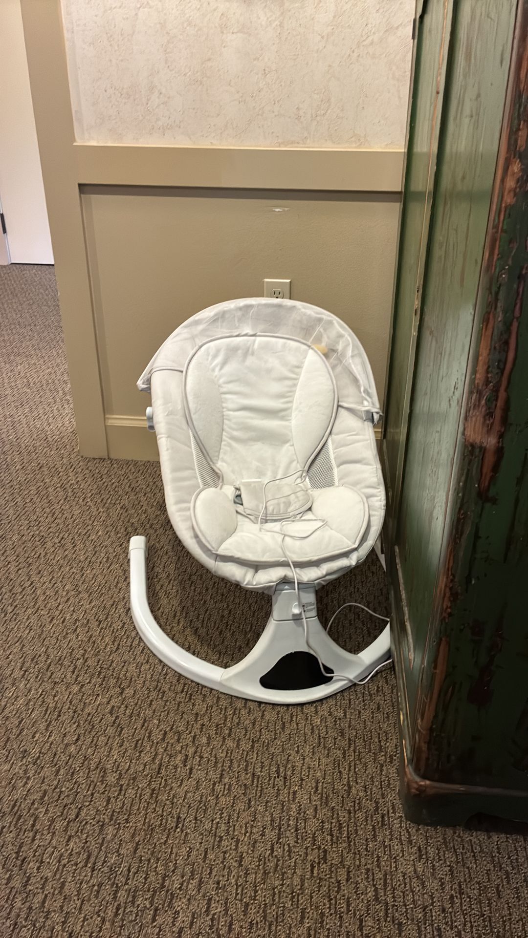Good used condition!!! It plays music. Rocks baby side to side!! Very good to have!! My friend got this for my other friend but she already has one. Note:please wash before use. Sorry I never had a chance to take apart and wash!! Price reflects this. Thank-you for looking!! Only $10.
