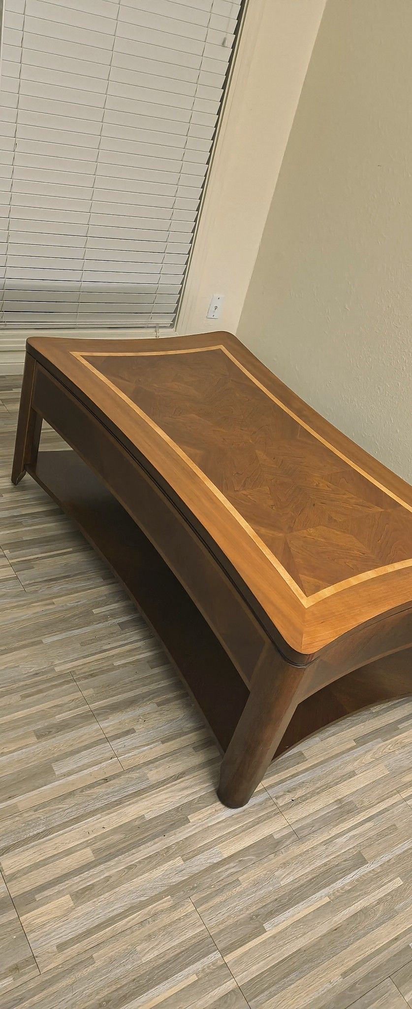 Elevate your living space with this beautifully crafted Riverside Furniture lift-top coffee table, blending timeless design and smart functionality. πͺ΅ Features: Genuine Riverside Furniture piece β Model T68-202 Handcrafted in Thailand with premium hardwoods and rich veneer inlay Geometric parquet top design with elegant light wood border detailing Smooth lift-top mechanism allows for a raised work or dining surface Hidden storage compartment underneath the top Solid wood frame with gracefully curved lines and sturdy construction π Production Date: July 15, 2005 π Condition: Excellent overall vintage condition with light, age-appropriate wear. The lift-top mechanism works smoothly, and the wood finish retains its beautiful luster. π° Comparable Retail (new, when sold): $450β$650 π Your Price: $100(or best offer) π Pickup at Door β Easy Loading This Riverside table is a collector-quality transitional design β a perfect combination of traditional woodworking and modern convenience. Ideal for anyone looking for a statement piece thatβs both functional and stylish.