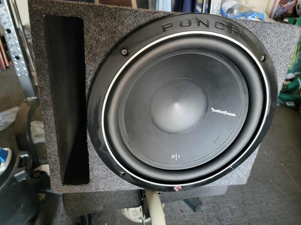 Rockford Fosgate 12 with ported box only asking 120 also have more car audio and install at good prices Subs, amps, kickers , car audio, car speakers, car stereos, double din, Indash, bluetooth, kickers, epicenter, bass, radios, apple play, Android , kicker, l7, 12, alpine, jbl, infinity, jl audio, kenwood, pioneer, samsung, iphone, android auto, carplay, apple play, kicker, car audio installer, kicker, subs, subwoofer, bass amp, 4 channel, car alarm, alarms, keyless entry