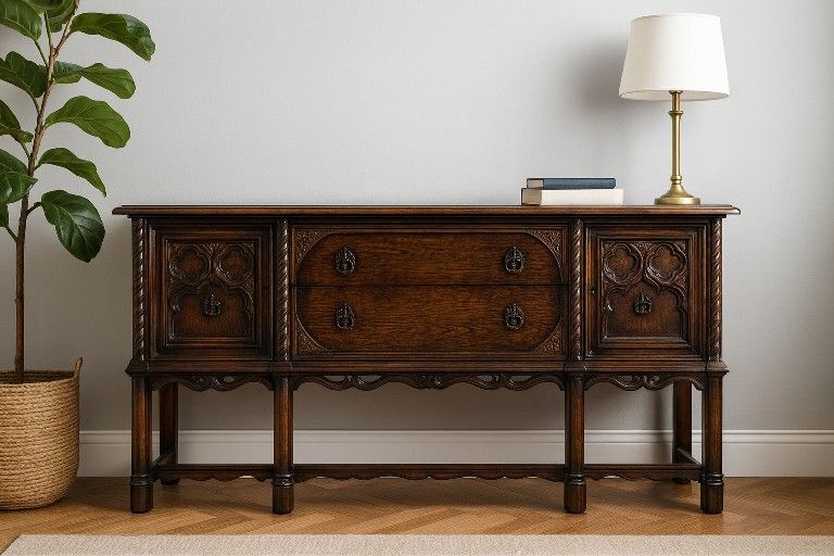 3-Piece Antique Gothic Jacobean Oak Set – Matching Suite