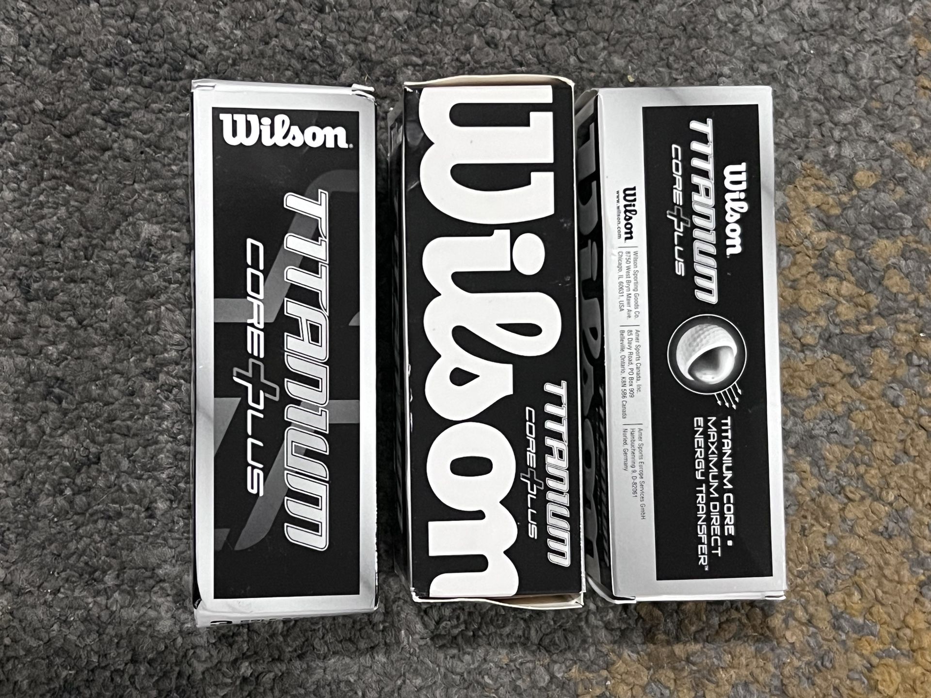 Wilson Titanium Core Plus Golf Balls Brand new, never used 3 balls per/ sleeve $2/sleeve I have 30 sleeves…I’ll sell the entire lot for $45.