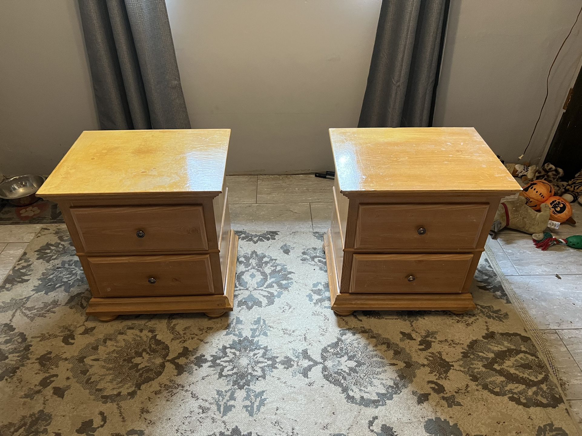 **$75 for Both** OBO *will sell for $50 each if you only want 1 *Both draws have minor scratches and sticker residue *Both draws open and close fine. *The right nightstands draws will come out completely **Pick up only and will help load the nightstands**