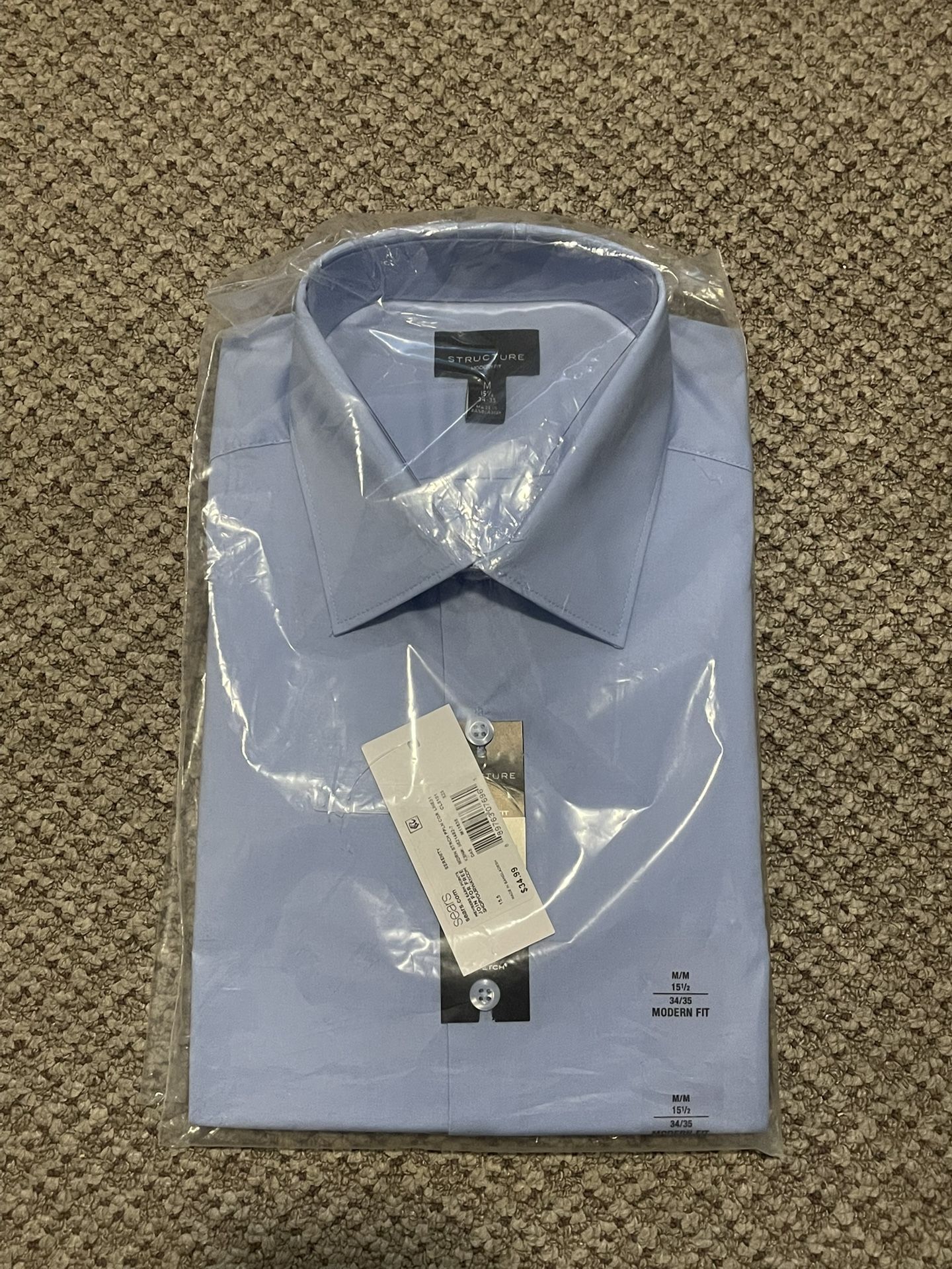 Structure business shirt still in the package and brand new dress shirt. Never worn. Modern Fit medium 15 1/2, 34/35 size. OBO Cash only Pick up only No cash apps or PayPal