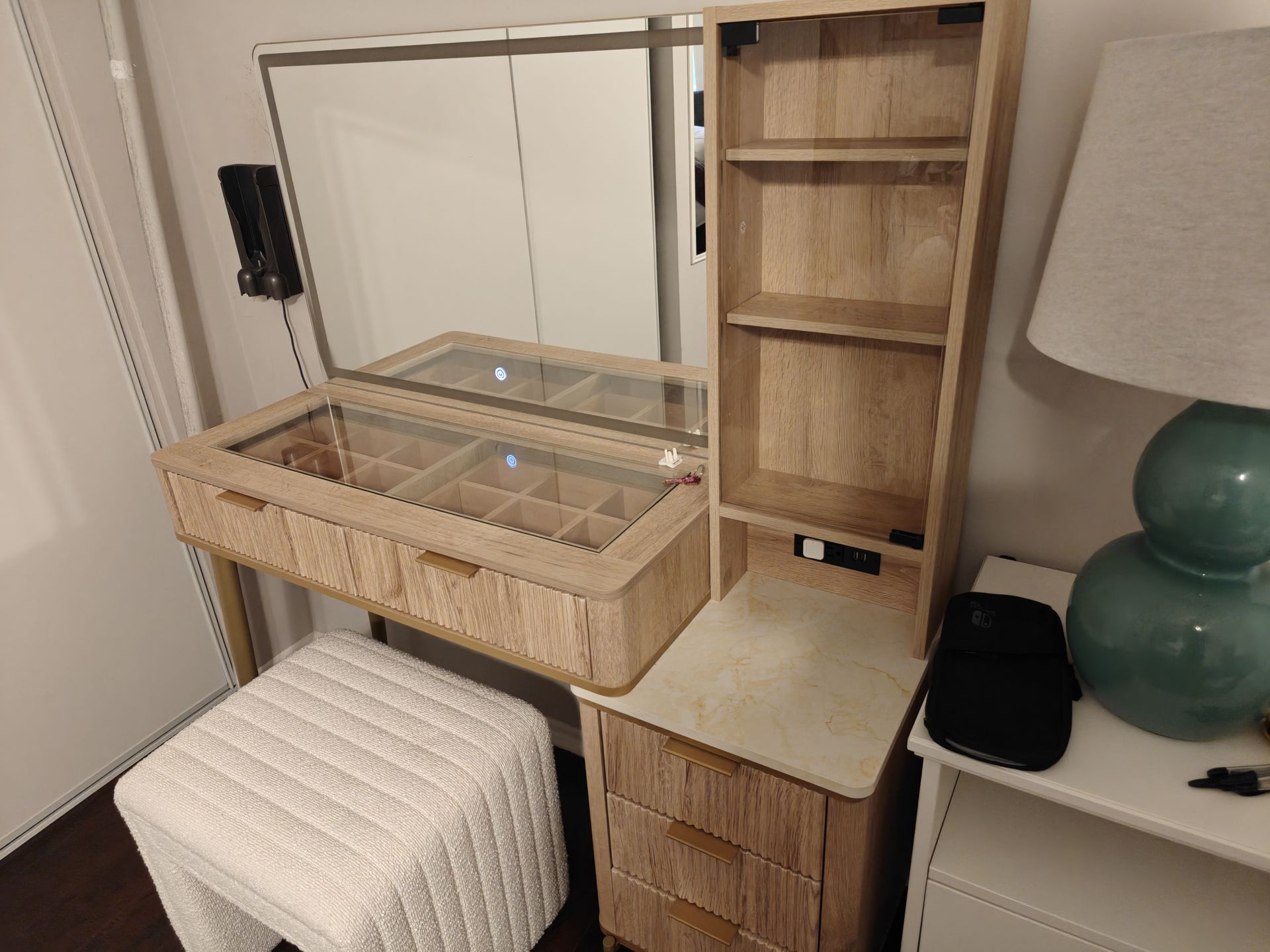 Fluted Makeup Vanity Desk with 36" HD Lighted Mirror