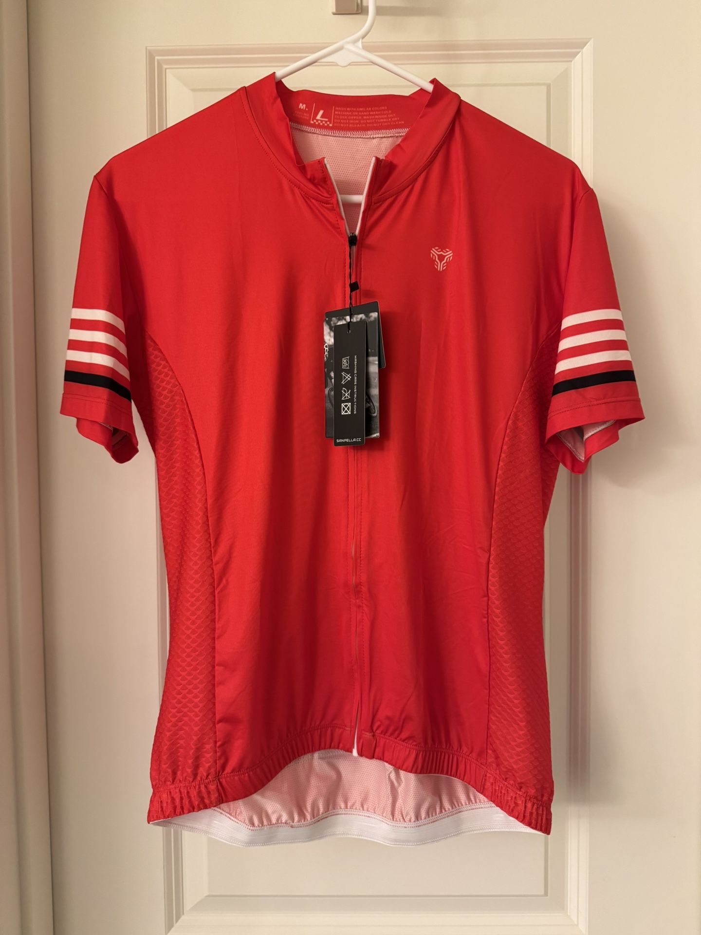 A very handsome, classic and understated stripe design, featuring an eye-catching vibrant hot red color! Brand new condition, has never been worn. High-performance fabric and a pro-style slim fit. Very light and breathable, perfect for summer riding. Or pair with your base layer or vest for comfort on cool morning rides. Men’s size Med. / 36.6” chest — runs small, I would say this is more of a Small in US sizing. Never worn, it was a gift and too small for me. MATERIALS COMPOSITION Micro perforated Back Mesh side panels; 90% Polyester / 10% Elastane Product weight: 150-250 Grams, GSM of fabric:140GSM KEY FEATURE&DETAILS Fit: Pro Fit Features: Quick Dry, Breathable, Anti-Pilling, Anti-Shrink, Anti-sweat, Anti-Wrinkle Gripper: Silicon gripper on the waist to prevent movement Ink: Imported Italian, never-fade ink for long-lasting vibrant colors Pockets: Three reinforced stitched back pockets Printing: Full sublimation, heat transfer printing Zipper: Full-length hidden zip(SBS semi-automatic zipper) Pearl Izumi, Castelli, Rapha, Louis garneau, gorewear, giordana, endurance, ostroy, le col, zoic, Giro.
