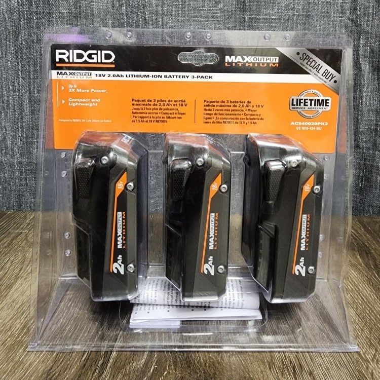 Ridgid 18V 2 Ah Max Output Lithium Ion Batteries 3 Pack